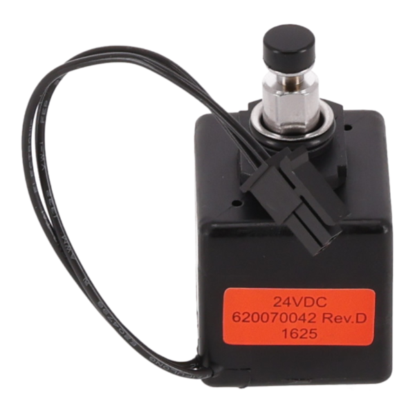 This solenoid assembly has a 24V rating, used for controlling mechanical movements in electrical systems.